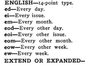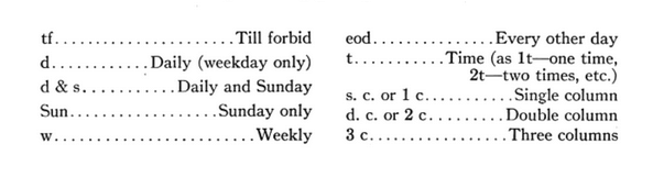 I’ve been looking at books like The Encyclopedia of the Mail Order Business and The Printers Dictionary of Technical Terms. I haven’t found a source that focuses just on these ‘blind dates’, they’re fairly easy to spot when they’re included in lowercase. (This is not always the case: MacGregor’s Book of Bank Advertising sticks its few blind dates in with everyone else.)